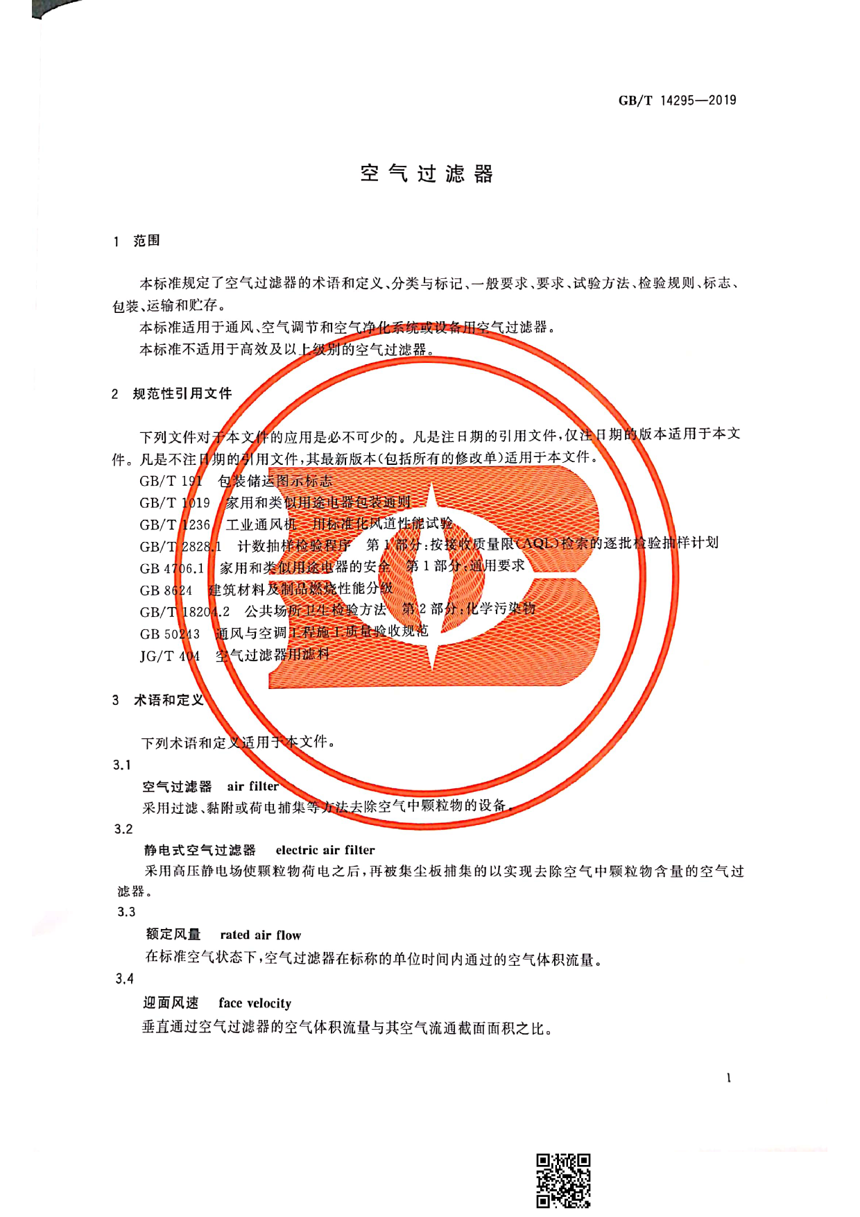 空气过滤器国家标准